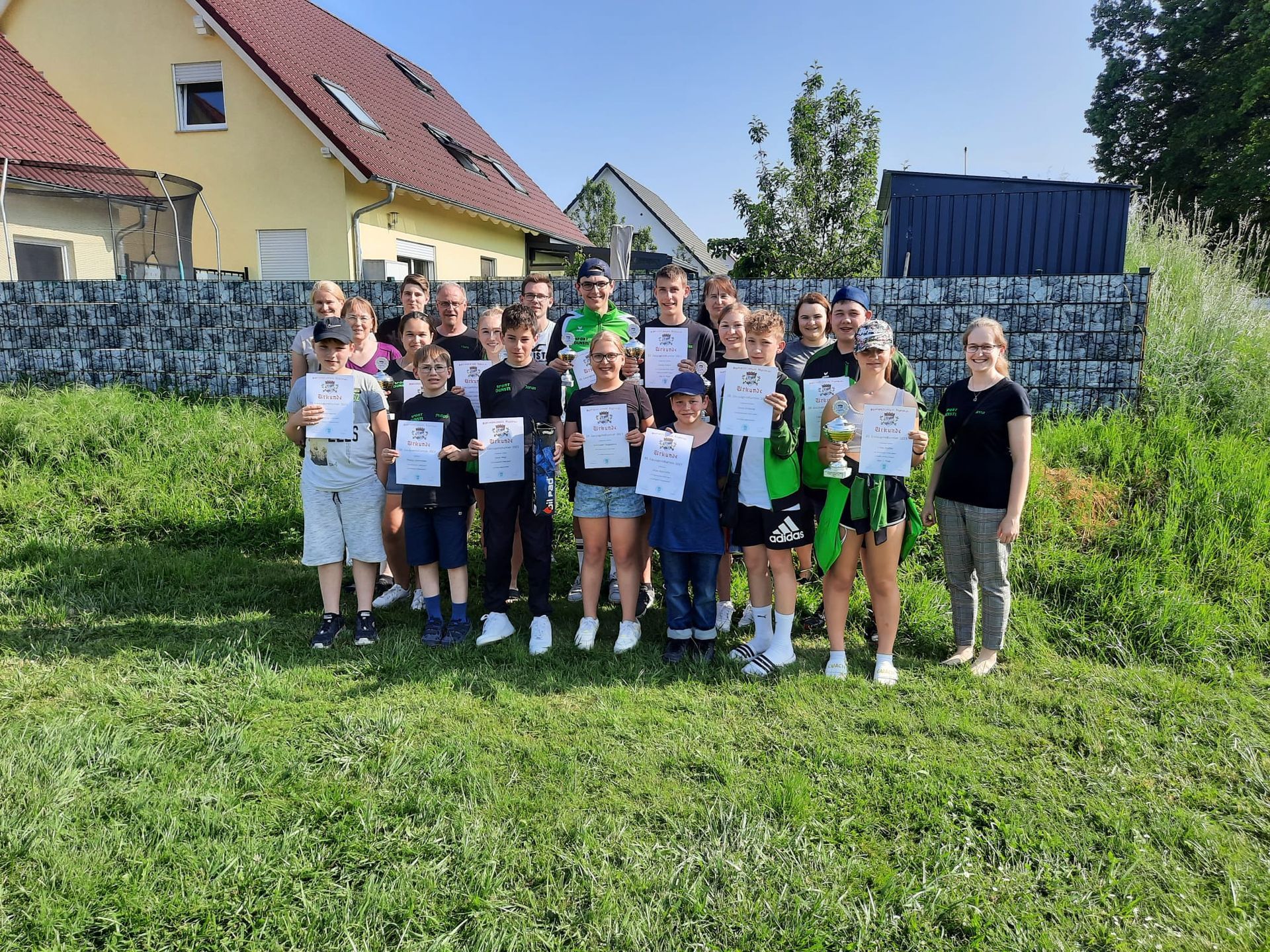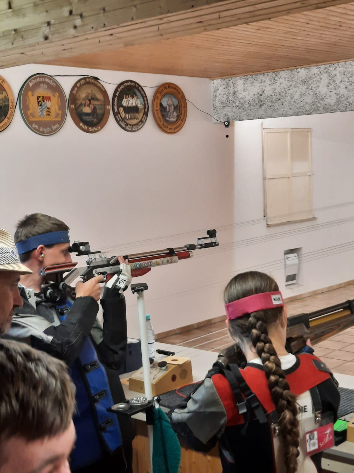 Traditionell fand dieses Jahr an Pfingsten wieder das Gaujugendturnier mit Zeltlager organisiert vom Sportschützengau Ingolstadt statt. Mit großer Freude fuhr die Egweiler Schützenjugend mit den Betreuern zur Schießanlage nach Rockolding. Nach dem morgendlichen Zeltaufbau gings auch direkt los mit dem ersten Durchgang des Gaujugendturniers, wo jeder Schütze 20 Schuss stehend zu absolvieren hat. Aber auch neben dem Schießen war für Unterhaltung gesorgt, z.B. bei gemeinsamen Fußballspielen, Federballmatches, Boccia, Karten- und Würfelspielen, Stadt Land Fluss und vielem mehr. Am Abend wurde gemeinsam gegrillt und im Anschluss fand ein Betreuerwettbewerb statt, bei welchem immer ein Betreuer mit zwei Jungschützen an den Start ging und sich verschiedenen Stationen stellen mussten. Nach einer kurzen Nacht fand am nächsten Vormittag der zweite Durchgang des Gaujugendturniers mit ebenfalls 20 Schuss statt. Am Nachmittag fanden dann die Finaldurchgänge bei guter Stimmung und lauter Musik statt. Hierbei treten in jeder Klasse die 8 besten Schützen gestaffelt nach Vorkampfergebnissen an. In der Schülerklasse qualifizierten sich Manuela Lehenmeier und Fiona Stadler und erzielten einen Doppelsieg für Egweil. Außerdem stellten Jonas Heigl, Jonas Schlamp und Magdalena Schimmer ihr Können unter Beweis. In der Jugendklasse belegte Luisa Heinrich im Finale den 3. Platz vor Verena Lehenmeier auf Platz 4. Und auch in der Juniorenklasse durften zwei Egweiler Schützen ins Finale einziehen. Tobias Fetsch kam hierbei auf Platz 4 und Lennox Baier auf Platz 7. Fabian Nimmrichter verpasste das Finale nur knapp und kam auf Platz 10. Und auch Daniel Heindl, Philipp Lehenmeier und Julian Aiglstorfer erzielten mit dem SAMulator tolle Ergebnisse. Bei der anschließenden Siegerehrung wurden Urkunden, Pokaüle und für alle Schützen Sachpreise verteilt. Hierbei gewann Fiona Stadler, als Beste der Glücksscheibe, eine neue Walther-Schießtasche.