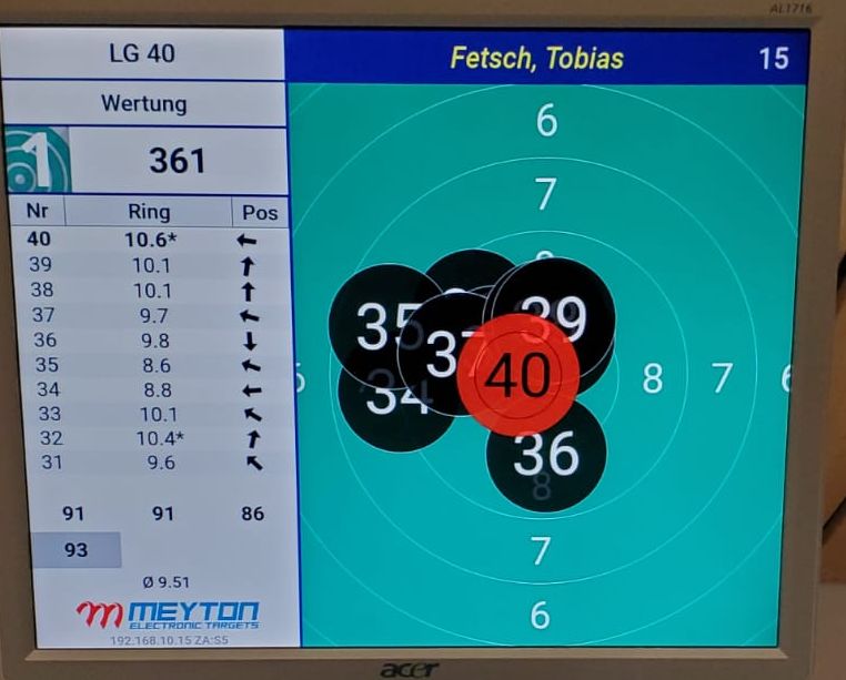 | Tobias Fetsch | 95,4 | 96,3 | 90,9 | 97,8 | 380,4 | 6. Platz |