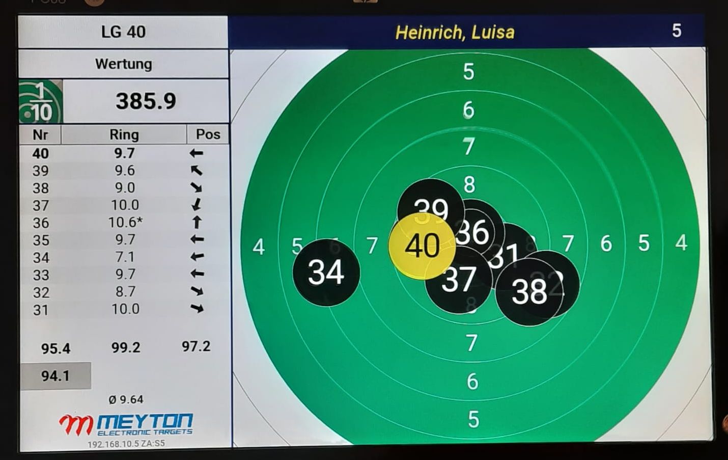 | Luisa Heinrich | 95,4 | 99,2 | 97,2 | 94,1 | 385,9 | 4. Platz |